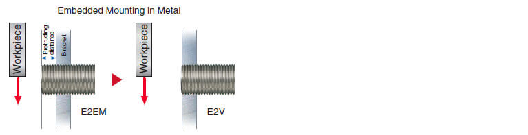 Модель E2V-X обеспечивает обнаружение на большом расстоянии объектов из алюминия или железа при установке заподлицо.